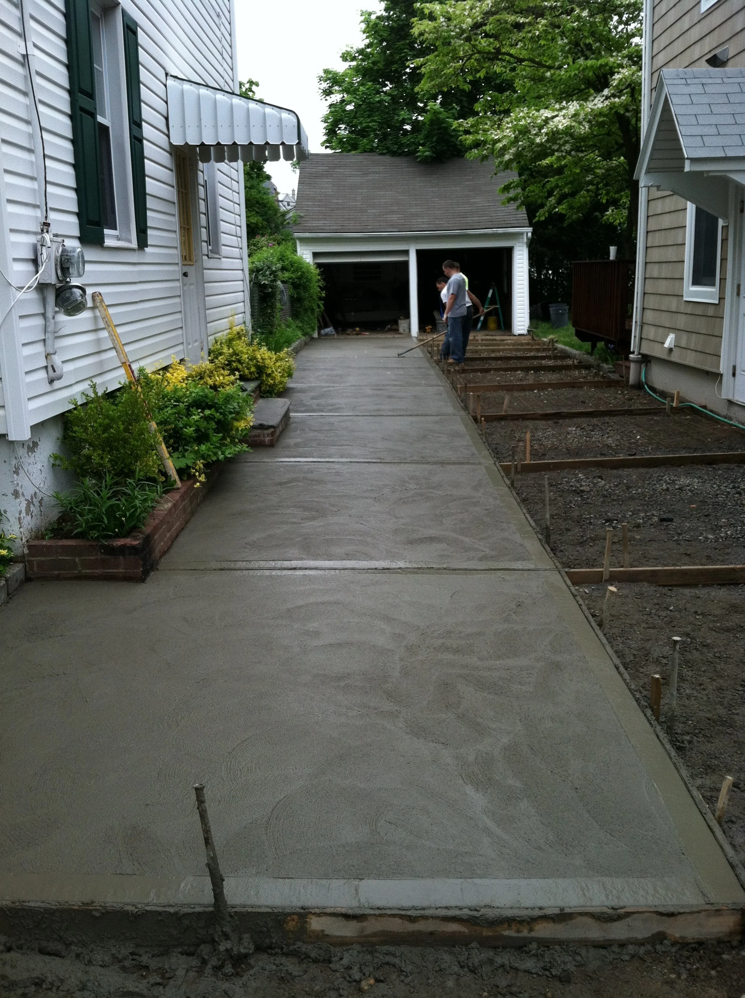 We have different options to do your driveways. Cement, pavers, or even asphalt. Always making sure that rain water is pitched away from the house given options for dry-wells for water issues